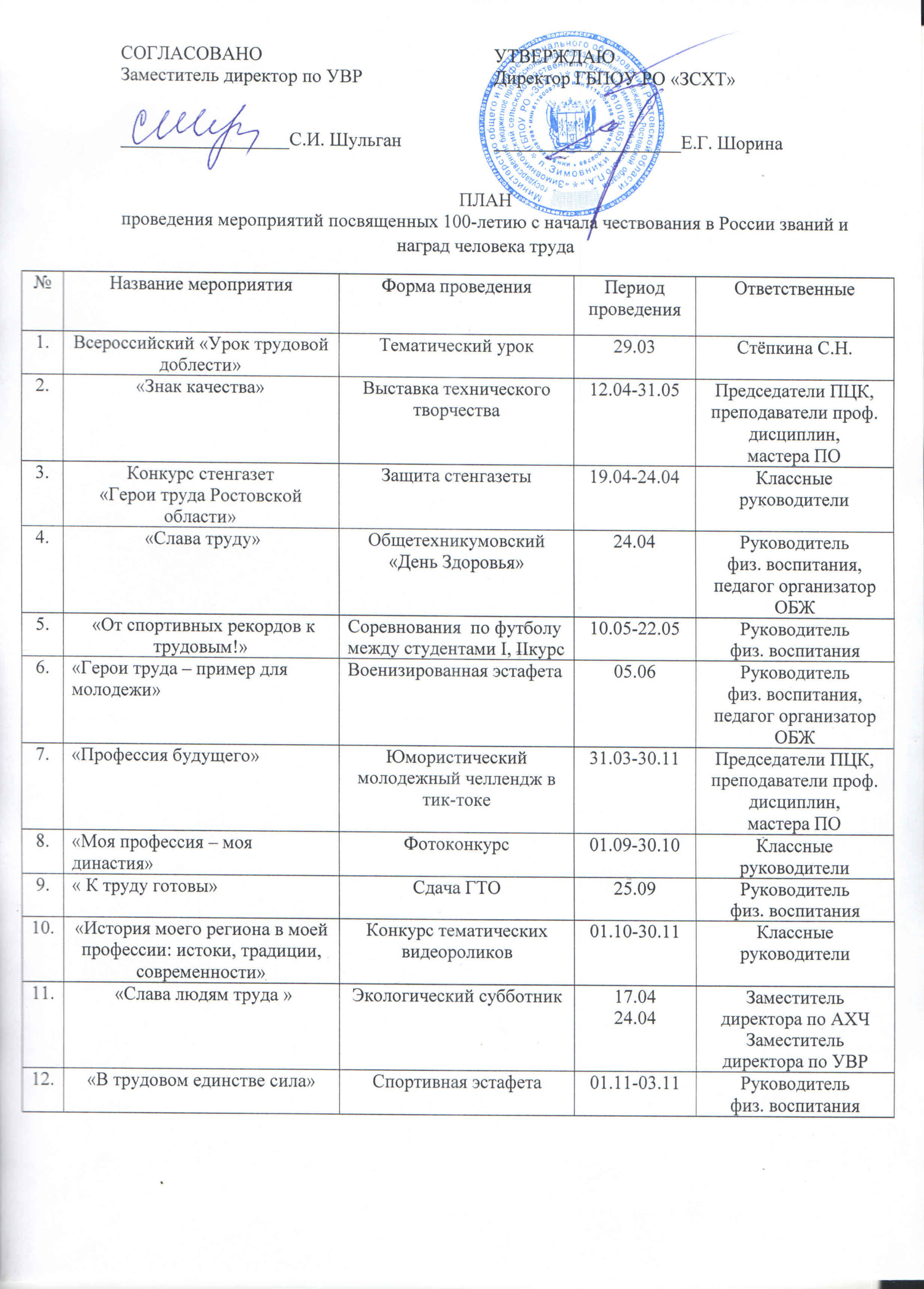 Главная / Новости / План проведения мероприятий посвященных 100-летию с начала чествования в России званий и наград человека труда