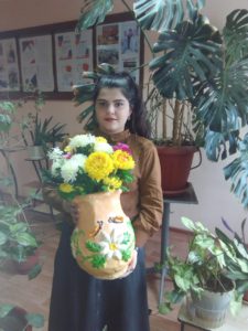 3 место — Расулова Зульфия Эльмуродовна, обучающаяся ГБПОУ РО «Зимовниковский сельскохозяйственный техникум имени Бабаевского П.А.» по специальности 19.02.10 Технология продукции общественного питания. Куратор Кураксина Анастасия Александровна. Ваза из бумаги для цветов.