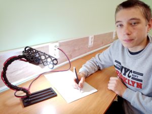 1 место — Ливенцов Никита Сергеевич, обучающийся группы № 1 «Тракторист-машинист с\х производства» ГБПОУ РО ПУ № 100. Куратор: Тиняев Анатолий Иванович. Настольная лампа «Светящиеся шайбы», используемые материалы:шайбы, цепи, профильный квадрат